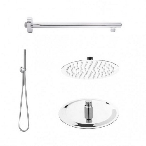 83,25 €Contiene: soffione Diam. 25 cm in acciaio Inox Aisi 304, braccio doccia, flessibile silver in PVC e kit doccetta in ottone con presa acqua.