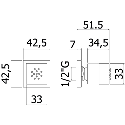 Soffione Per Getti Laterali Quadro Con Rosone 33 X 33 Mm
