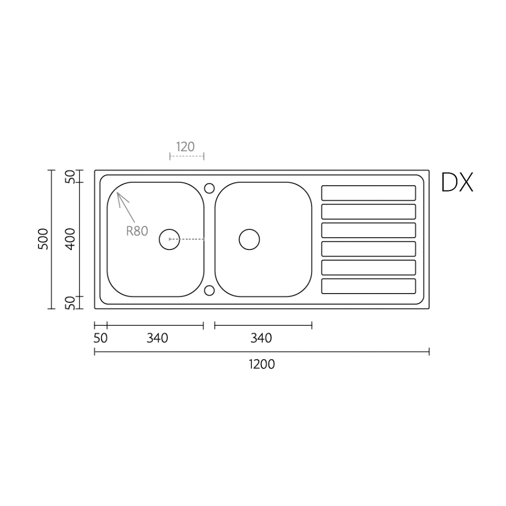 Lavello Incasso In Acciaio Inox Mod. Ls06 Cm 120×50 Cm. 120 Gocciolatoio Dx