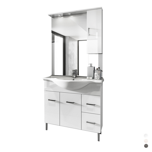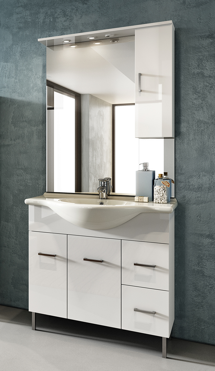 Mobile Bagno Venice Cm 105 Con Lavabo E Specchio Bianco Lucido