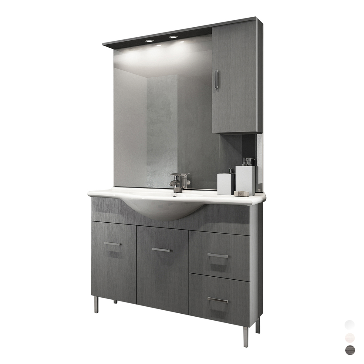 Mobile Bagno Venice Cm 105 Con Lavabo E Specchio Larice Bianco