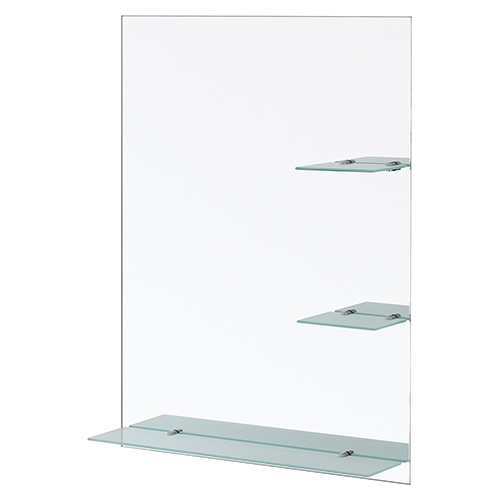 Linea Shelf: Specchio rettangolare con mensole in vetro satinato. Misure: 60x80cm.