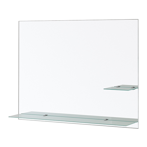 Linea Shelf: Specchio rettangolare con mensole in vetro satinato. Misure: 80x60cm.