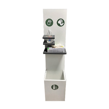 Colonnina In Legno Mdf Per Gel Igienizzante E Guanti Con Cestino Hxlxp Cm 130x30x30