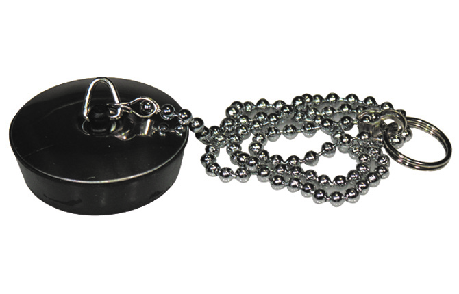 1,25 €Tappo in gomma nera per vasca con catena lunga cm. 45 a perline cromate.