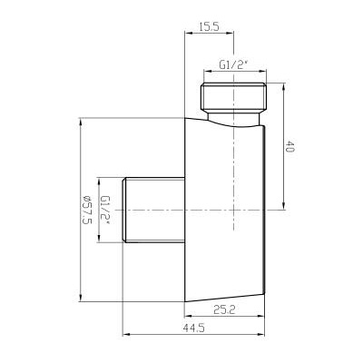Presa acqua piatta tipo rotondo. Diam. 57,5 mm. Attacchi 1/2″ M. Disponibile in versioni cromo e nero opaco.