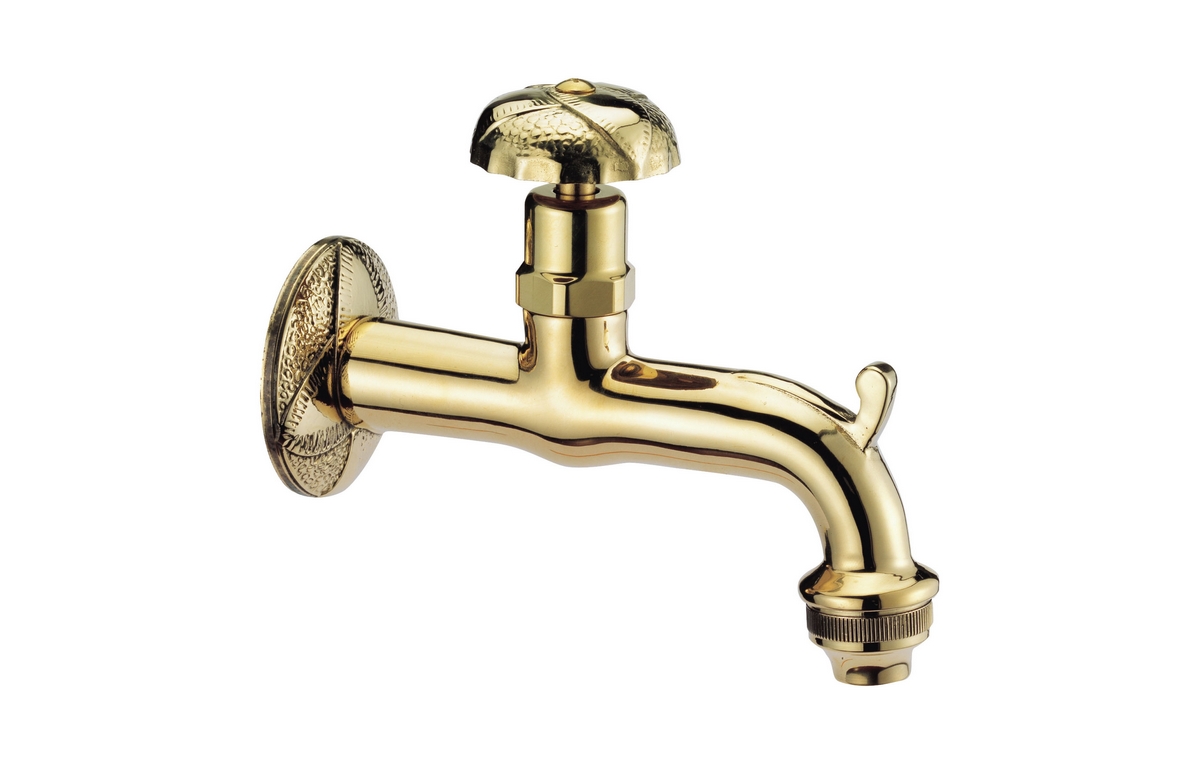 Rubinetto tipo Impero vitone tradizionale, completo di rosone e rompigetto.