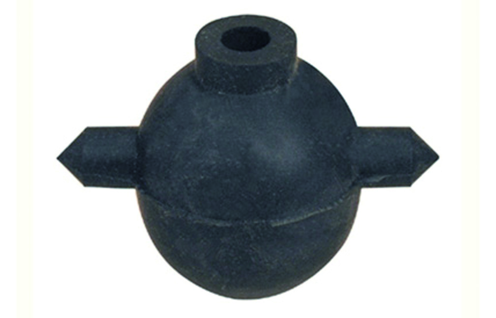 2,00 €Sfera in gomma NR nera anticalcarea, resistente al cloro. D. est 60 -H. 40 mm. Diam. passante superiore 51 mm / Diam. passante inferiore 19 mm.