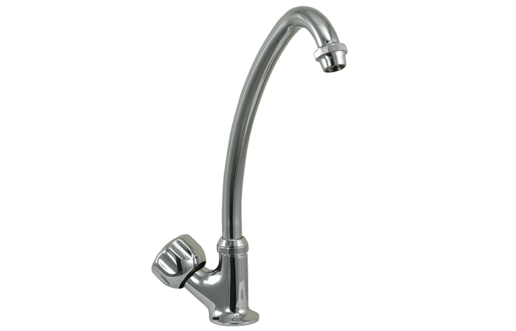 Rubinetto mono-maniglia con bocca a collo cigno.