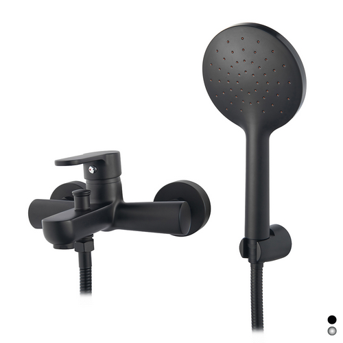 65,50 €Miscelatore monocomando esterno per vasca con deviatore automatico cartuccia diam. 35 mm, completo di doccetta, flessibile e gancio.