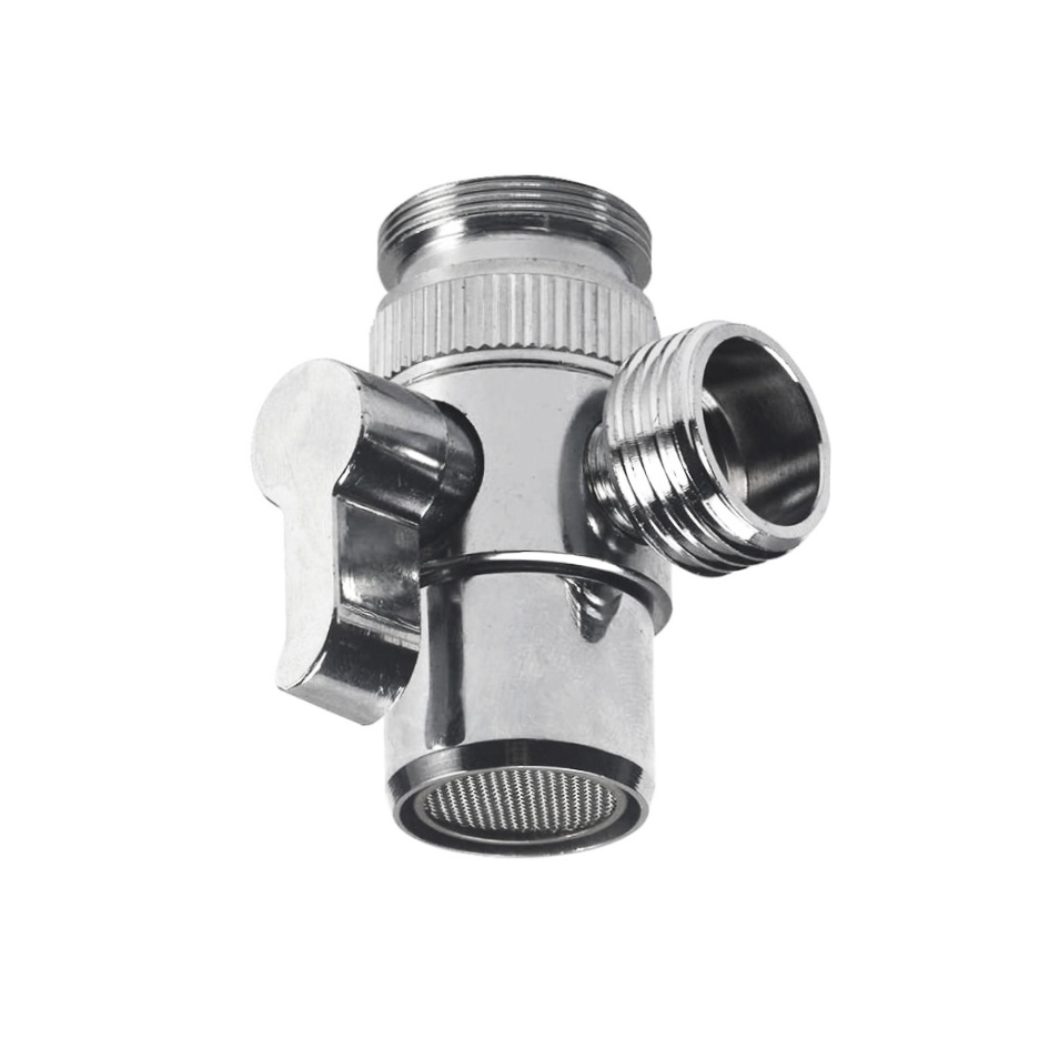 Deviatore in ottone pesante con adattatore filetti 22×1/24×1. Adatto per cucina e bagno.