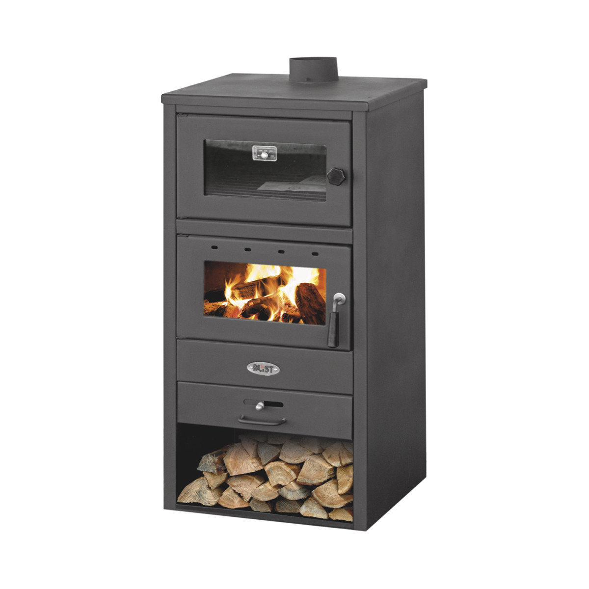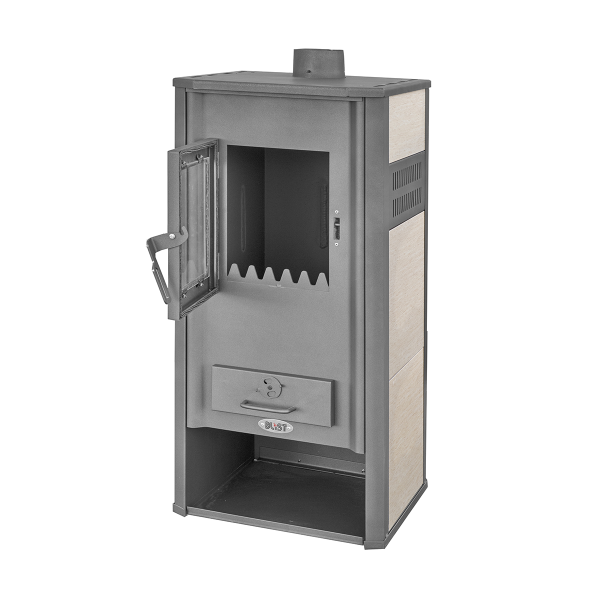 Stufa a legna. Struttura in acciaio. Caricamento frontale. Potenza: 5-7 kW. Aria primaria regolabile. Ideale per ambienti fino a 120 m3. Pratico vano inferiore portalegna. 2 […]