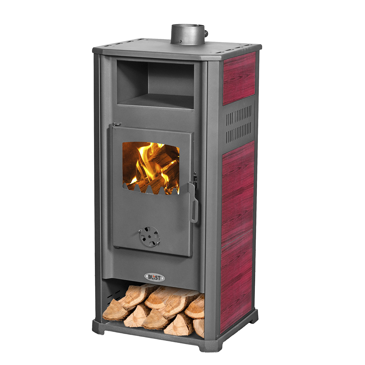 Stufa a legna. Struttura in acciaio. Caricamento frontale. Potenza: 9-10 kW. Aria primaria regolabile. Ideale per ambienti fino a 120 m3. Pratico vano portalegna. 2 anni […]