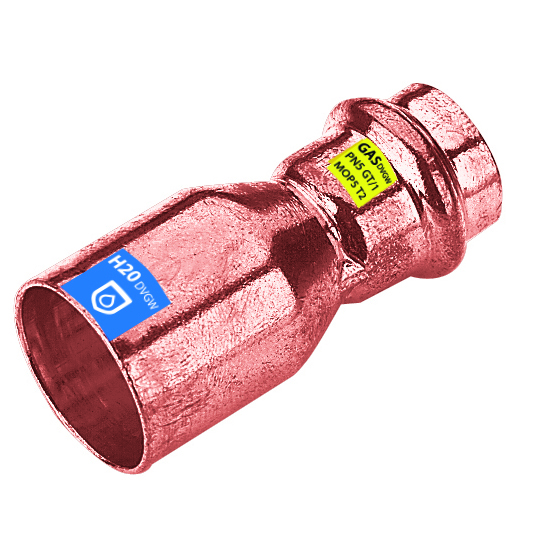 19,00 €Raccordi in rame CW024A a pressare FRABOPRESS SECURFRABO. Raccordo unico per acqua e gas. Rame secondo EN1057. O-ring giallo in HNBR. Profilo di pressatura: V.