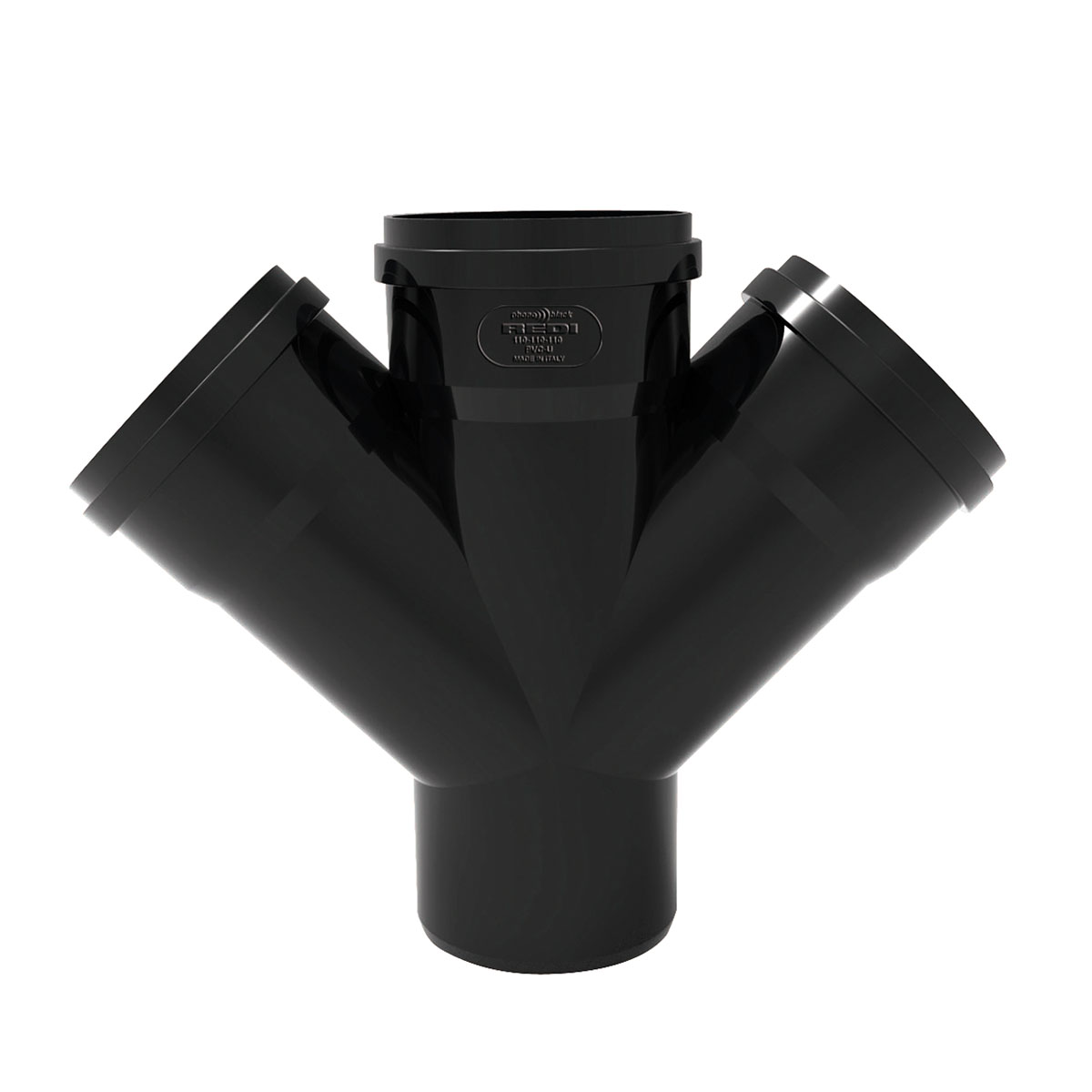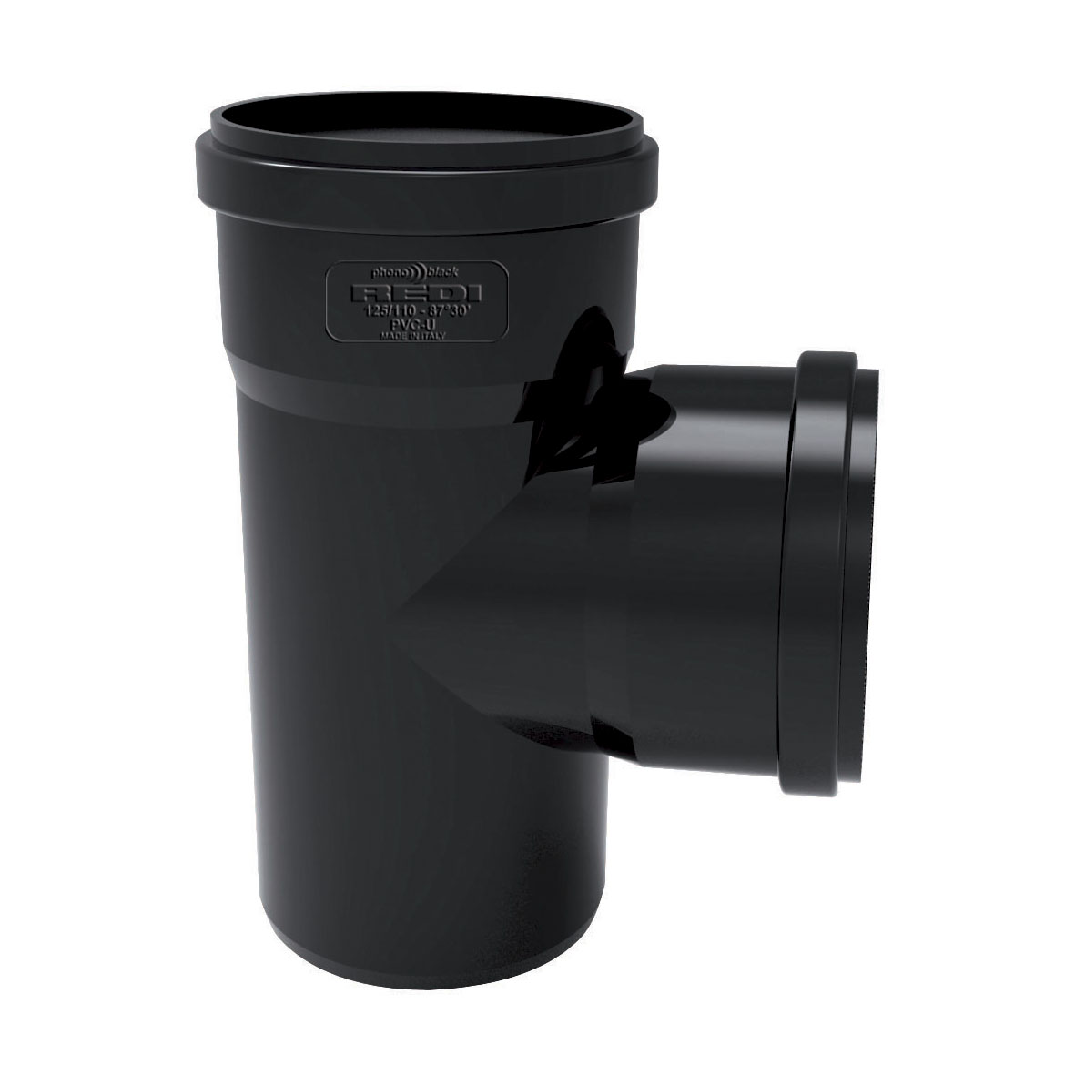 Sistema di scarico fonoisolante a innesto in PVC nero. Certificazione acustica 13dB a 2l/s.