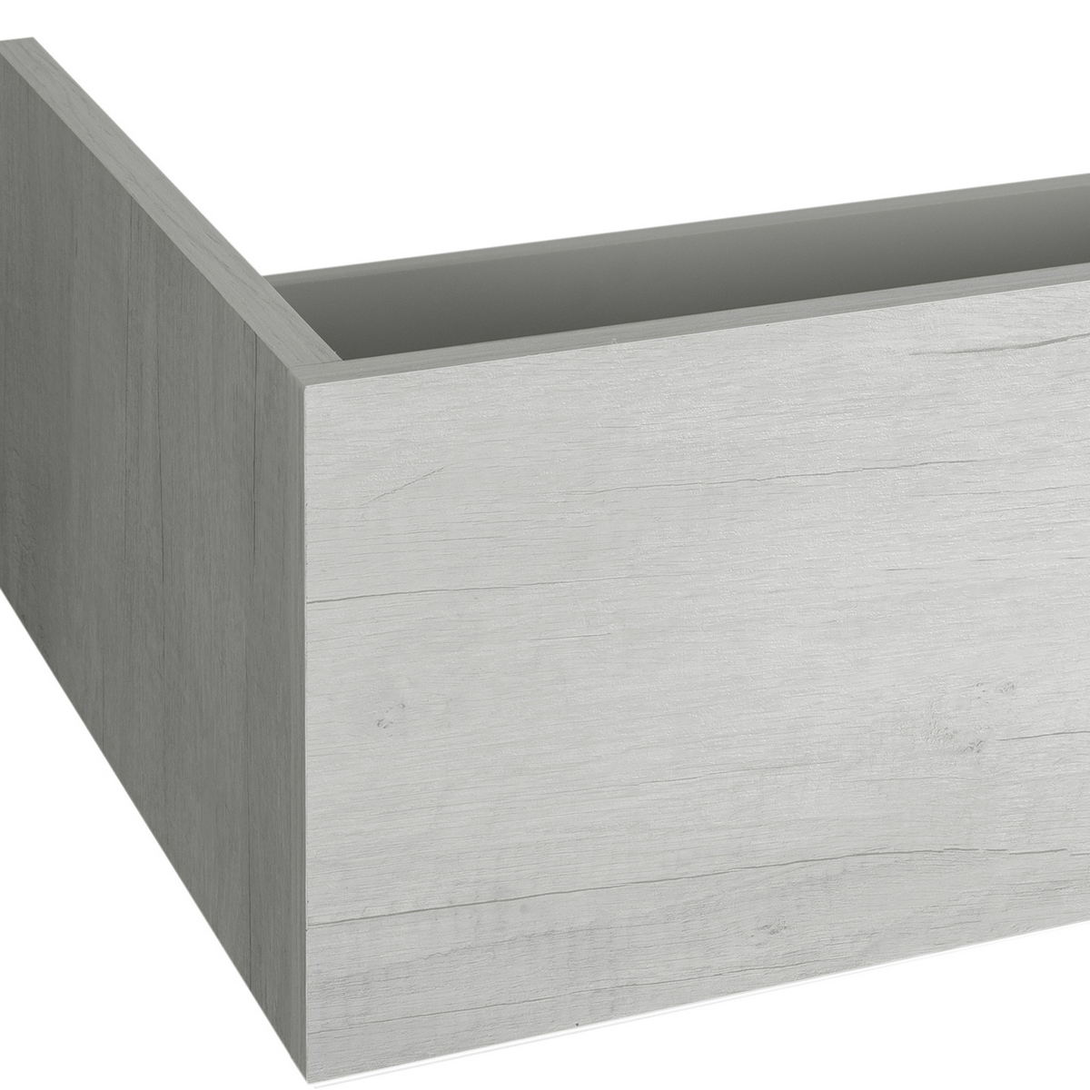 Base sospesa realizzata in nobilitato da 1,8 cm. Senza Top a 1 Cassetto apertura a push e chiusura rallentata. Senza vano sifone.