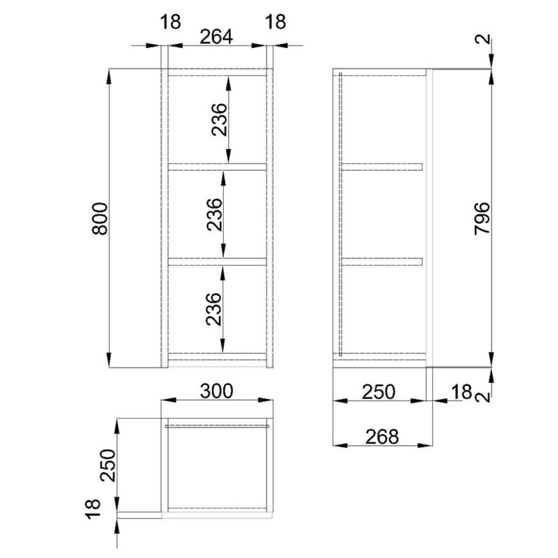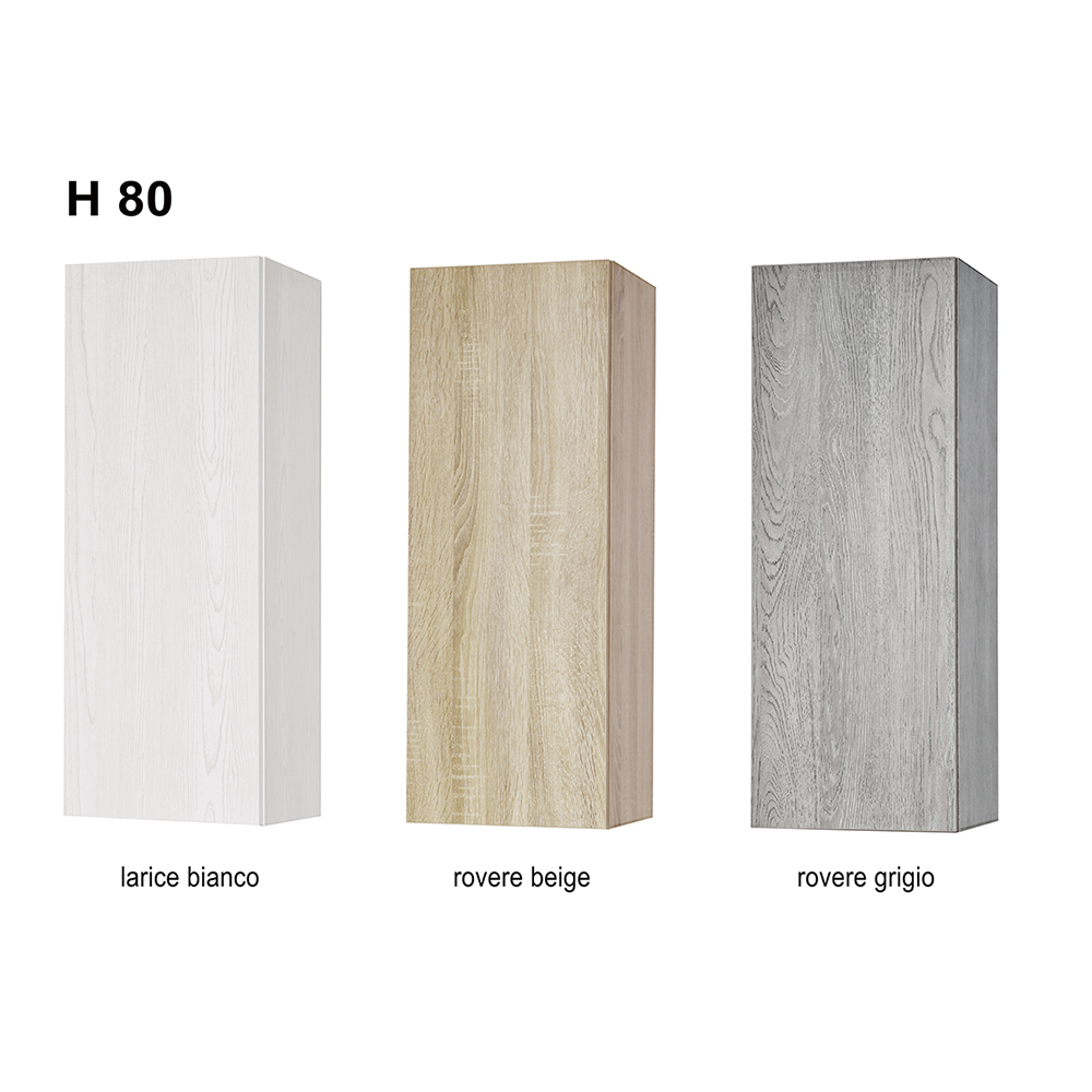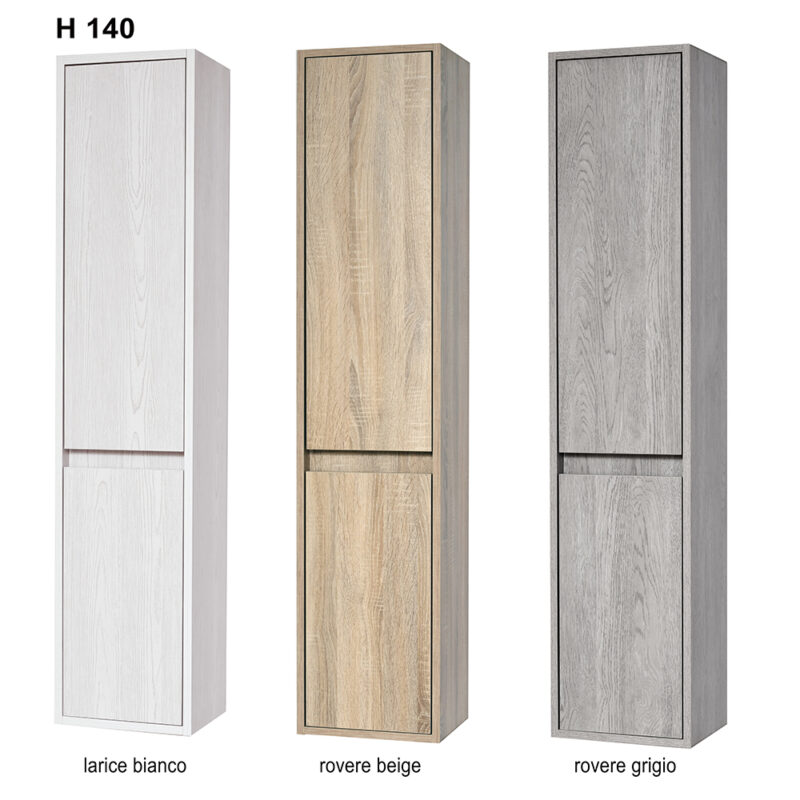 Colonna bagno sospesa Congrazia in mdf. Ante a chiusura rallentata. Apertura ante da sinistra verso destra (vista frontale).