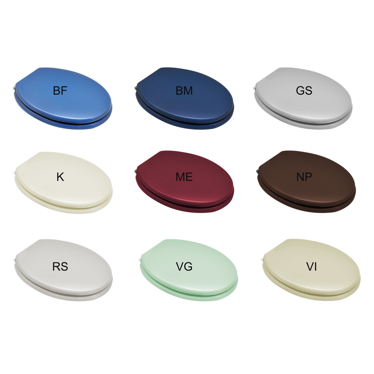 Sedile (cerniere tipo A). Dimensioni: Lunghezza cm 43-46. Larghezza cm 37. Interasse cerniere cm 13,5-18. Cerniere regolabili. Sedile in legno stabilizzato, colato in poliestere. Cerniere in ottone cromato e viti di fissaggio in acciaio inox. Sedile universale