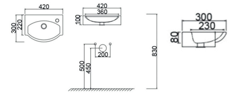 Lavabo A Parete Mod. Lp96 Cm 41×30 Cm 41 X 30
