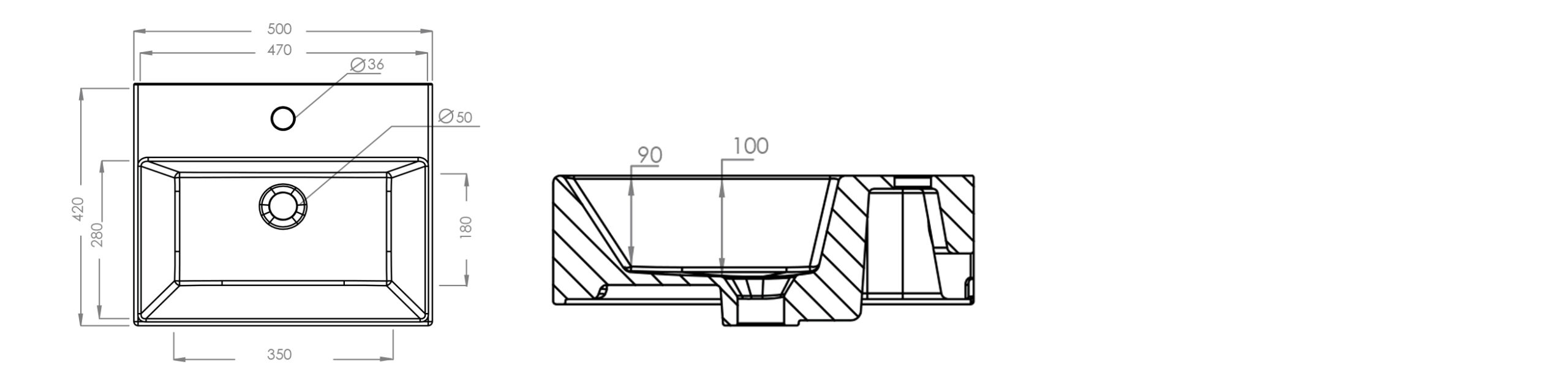 Lavabo in ceramica (nome tecnico: Vitreous China, Porcellana Vitrea o anche Porcellana Sanitaria) con troppo pieno e foro rubinetto. Installazione ad appoggio. Piletta non inclusa. Altezza cm 14. Colore bianco.