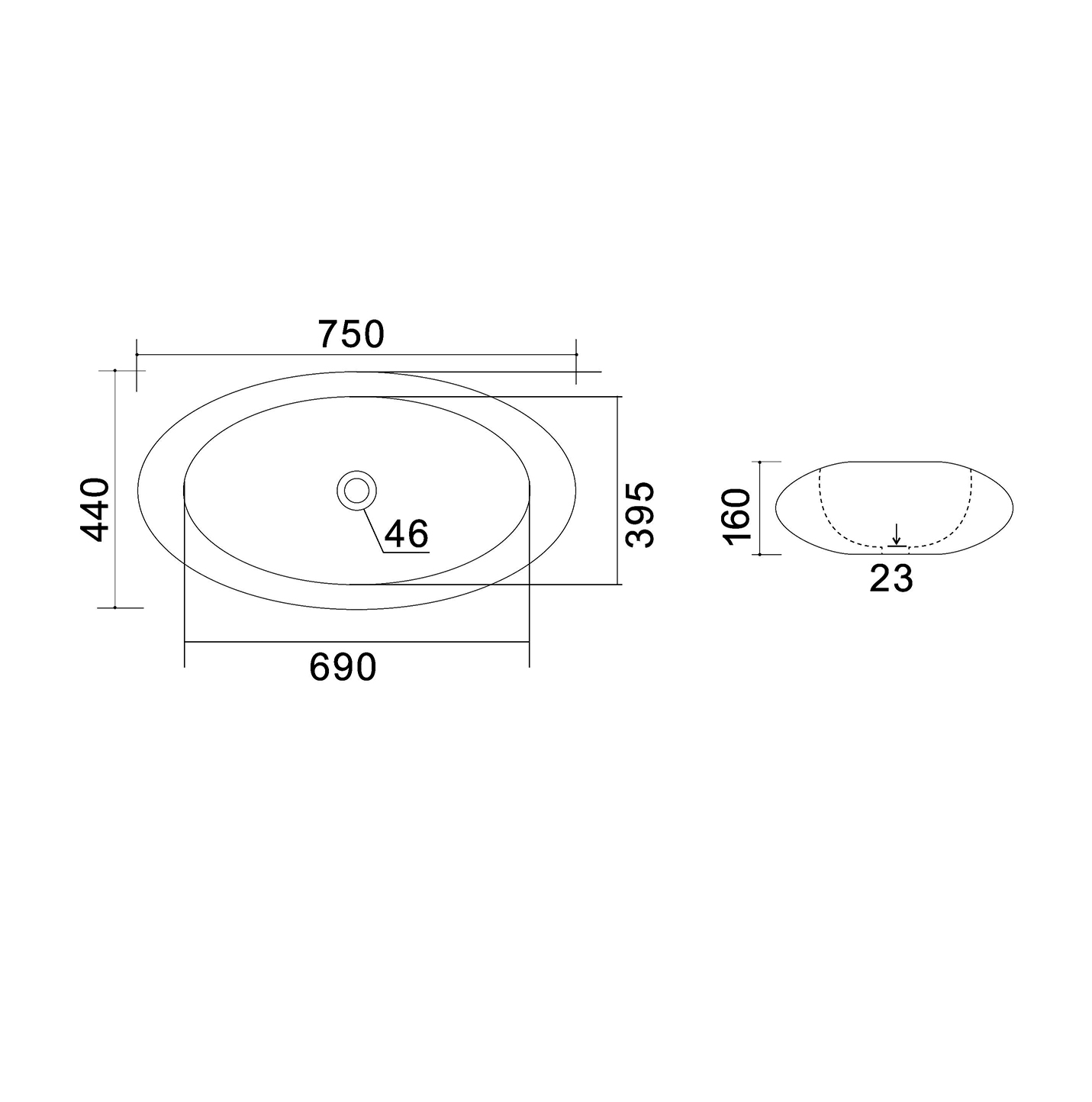 Lavabo in ceramica (nome tecnico: Vitreous China, Porcellana Vitrea o anche Porcellana Sanitaria) senza troppo pieno. Installazione ad appoggio. Piletta non inclusa. Altezza cm 16. Colore bianco.