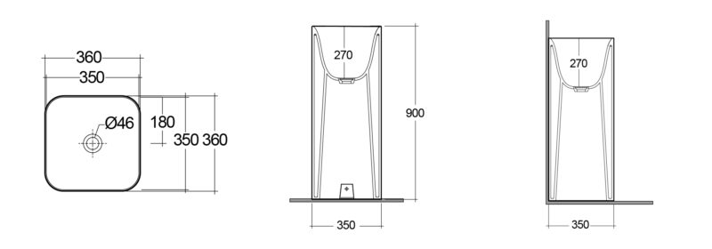 Lavabo autoportante senza foro rubinetto. In porcellana. Fissaggi inclusi. Confezione scatolata.