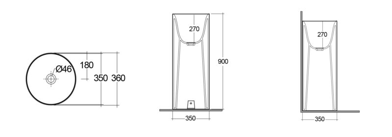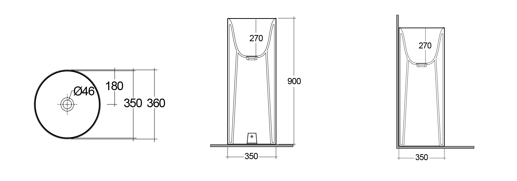Lavabo autoportante senza foro rubinetto. In porcellana. Fissaggi inclusi. Confezione scatolata.