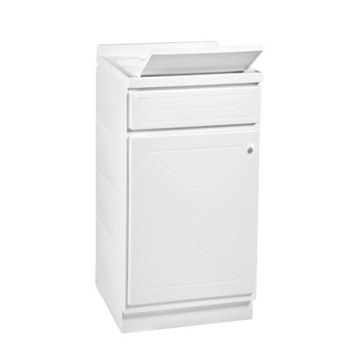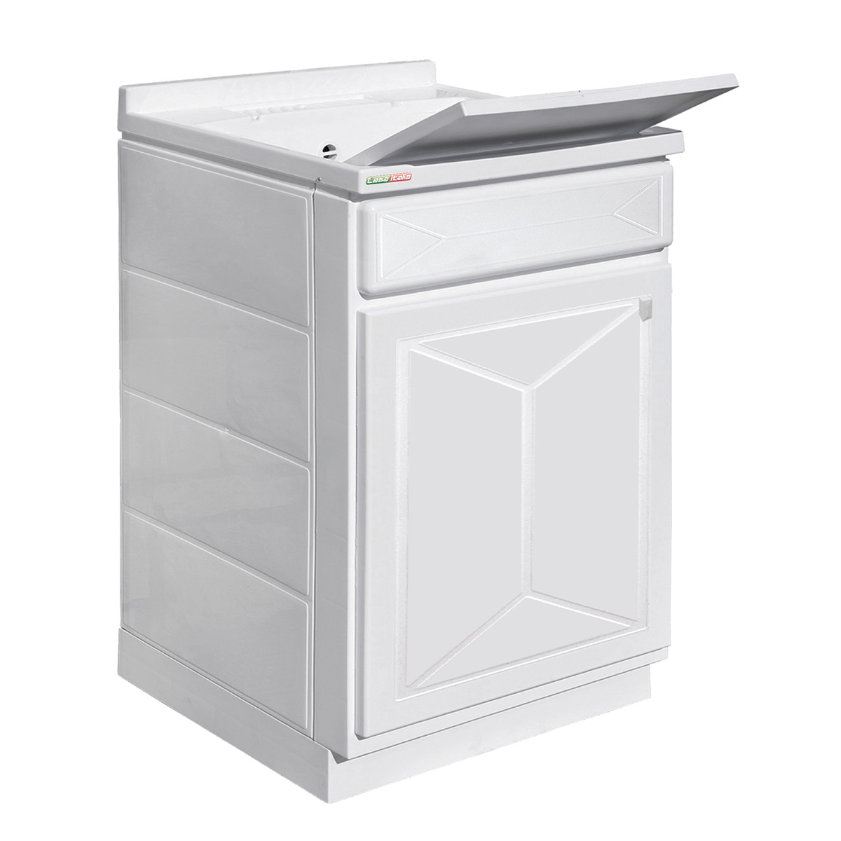 Lavatoio in polipropilene. Articolo già assemblato, completo di sifone, asse coprivasca, cerniere in metallo e piedini regolabili. H. 87 cm. Profondità vasca 25 cm. Vasca forabile per installazione rubinetto.