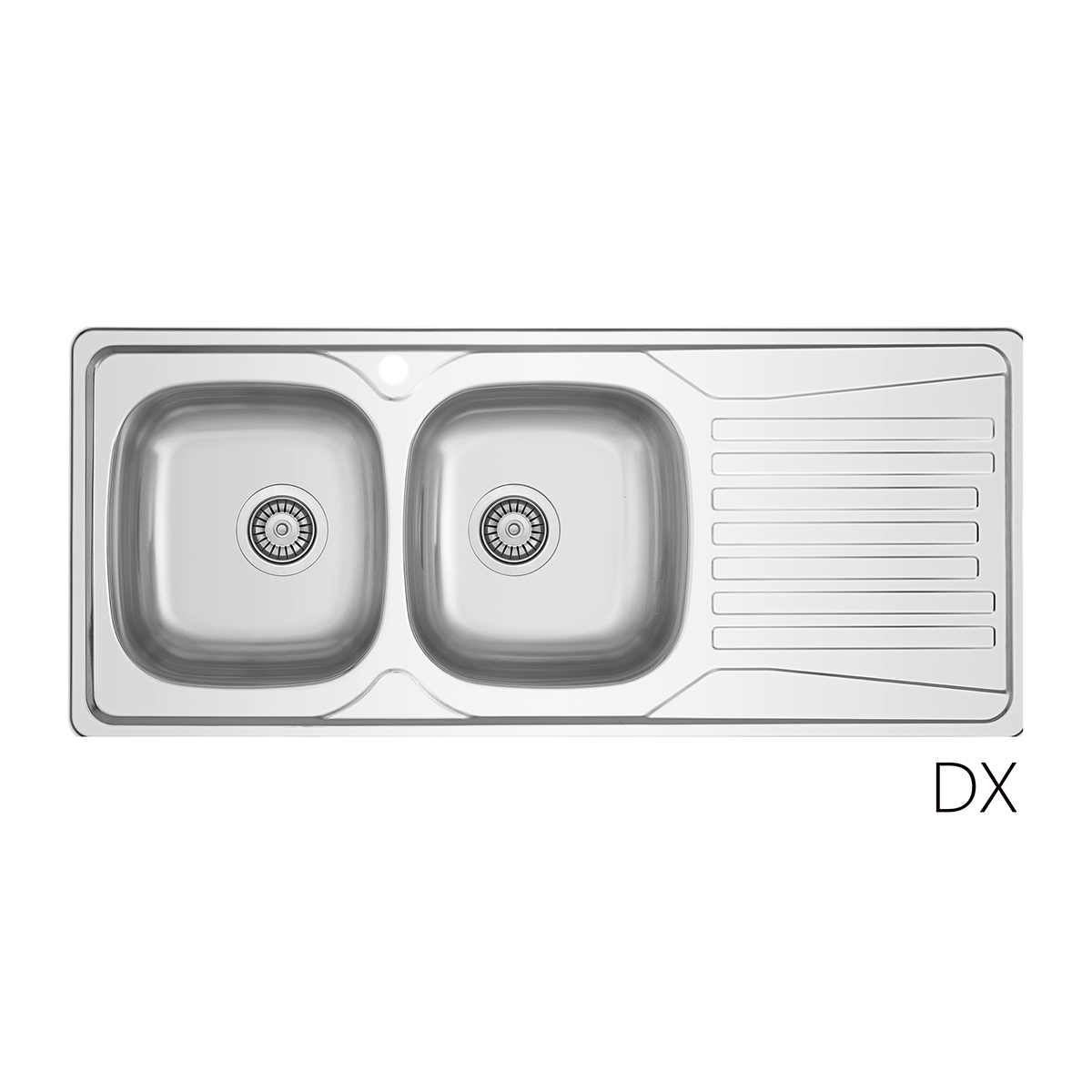Lavello in acciaio lucido. Completo di sifone, ganci per fissaggio, guarnizione autoadesiva. Profondità vasche 160 mm. In acciaio Inox 304 18/10. Con foro per miscelatore. Spessore acciaio inox 0,7 mm. Con piletta basket da 90 mm.