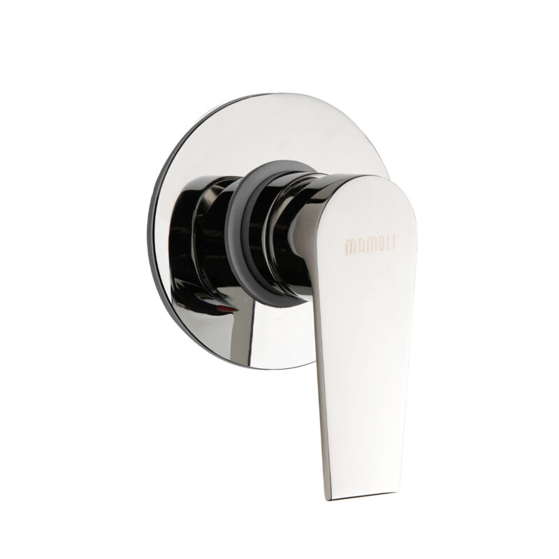 Miscelatore da incasso per doccia, composto da parte grezza e parte esterna di finitura. Rosone Diam. 116 mm.