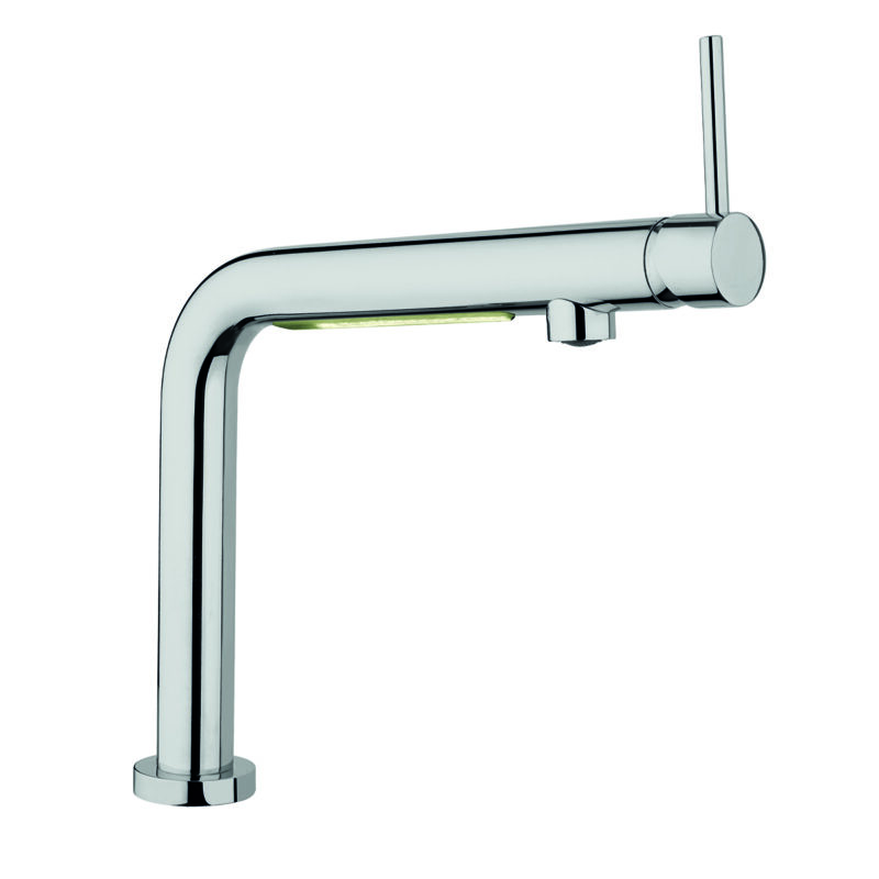 Miscelatore lavello con luce Led. Rotazione 180°. Rinforzo fissaggio in nylon di serie. Flex allacciamento 35 cm.