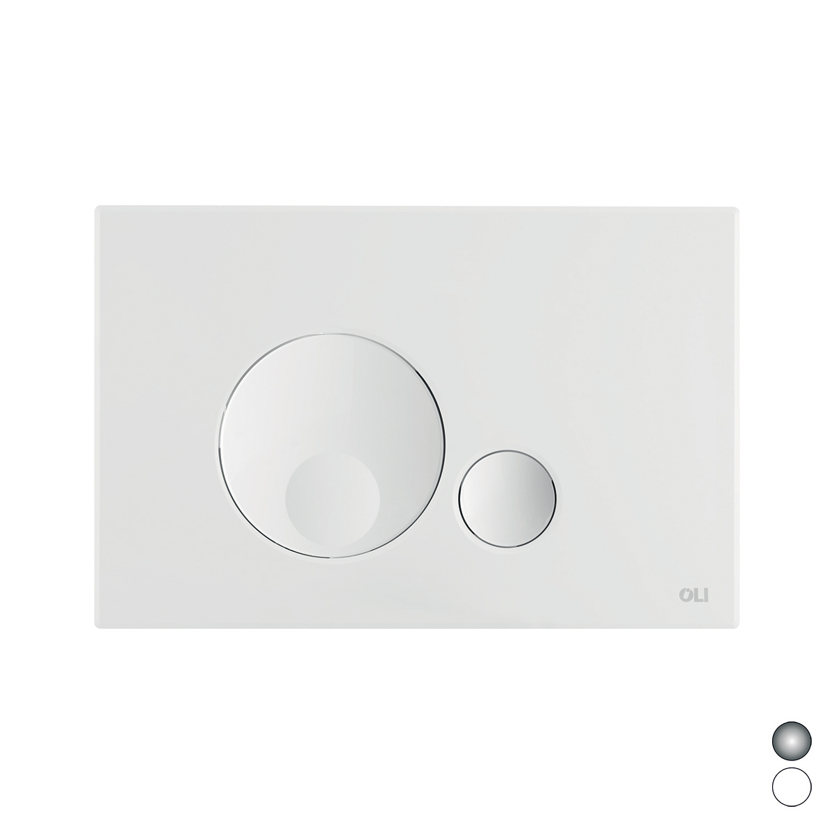 Azionamento meccanico doppio scarico. 6,5 mm di spessore. Apertura e chiusura con sistema click. Placca in ABS. Dimensioni: 230×150 mm.