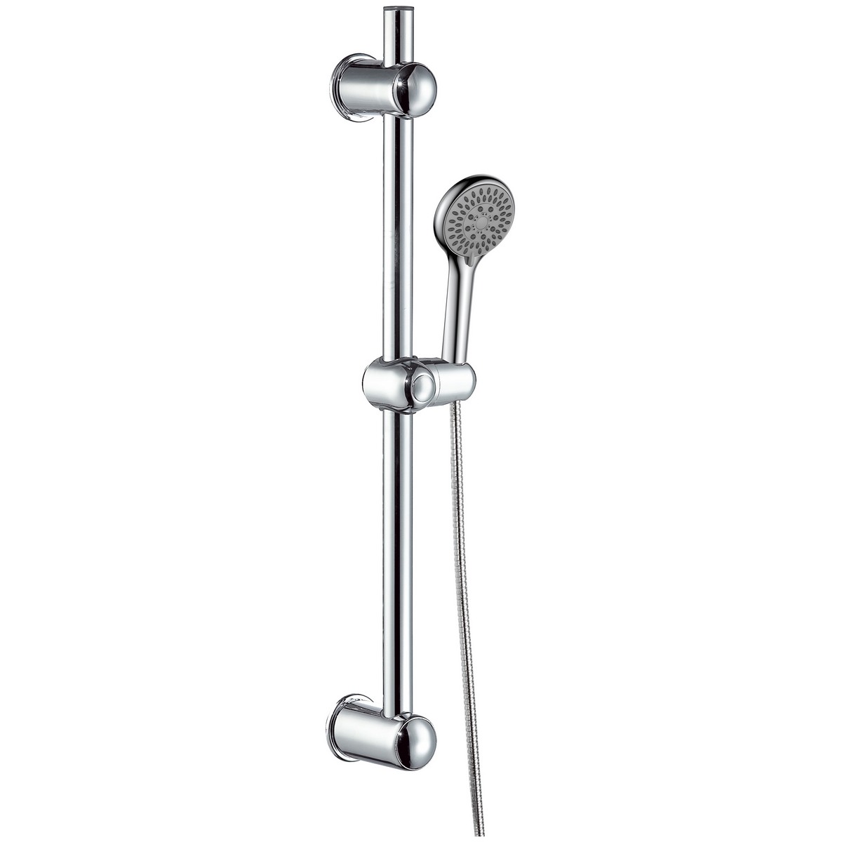 Saliscendi doccia composto da: asta acciaio cromato cm 64 dal diam. 24mm, doccetta 3 getti, laccio doccia 150 cm. Fissaggio superiore regolabile. L’interasse variabile, permette di sfruttare i fori delle installazioni precedenti evitando, in caso di ricambio asta, ulteriori fori alle piastrelle.