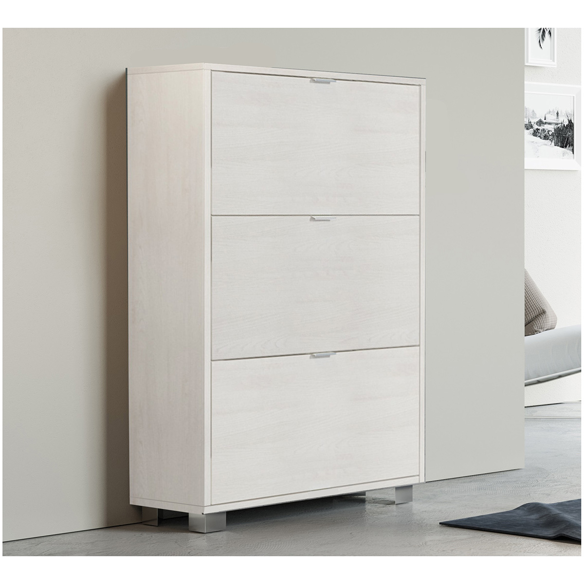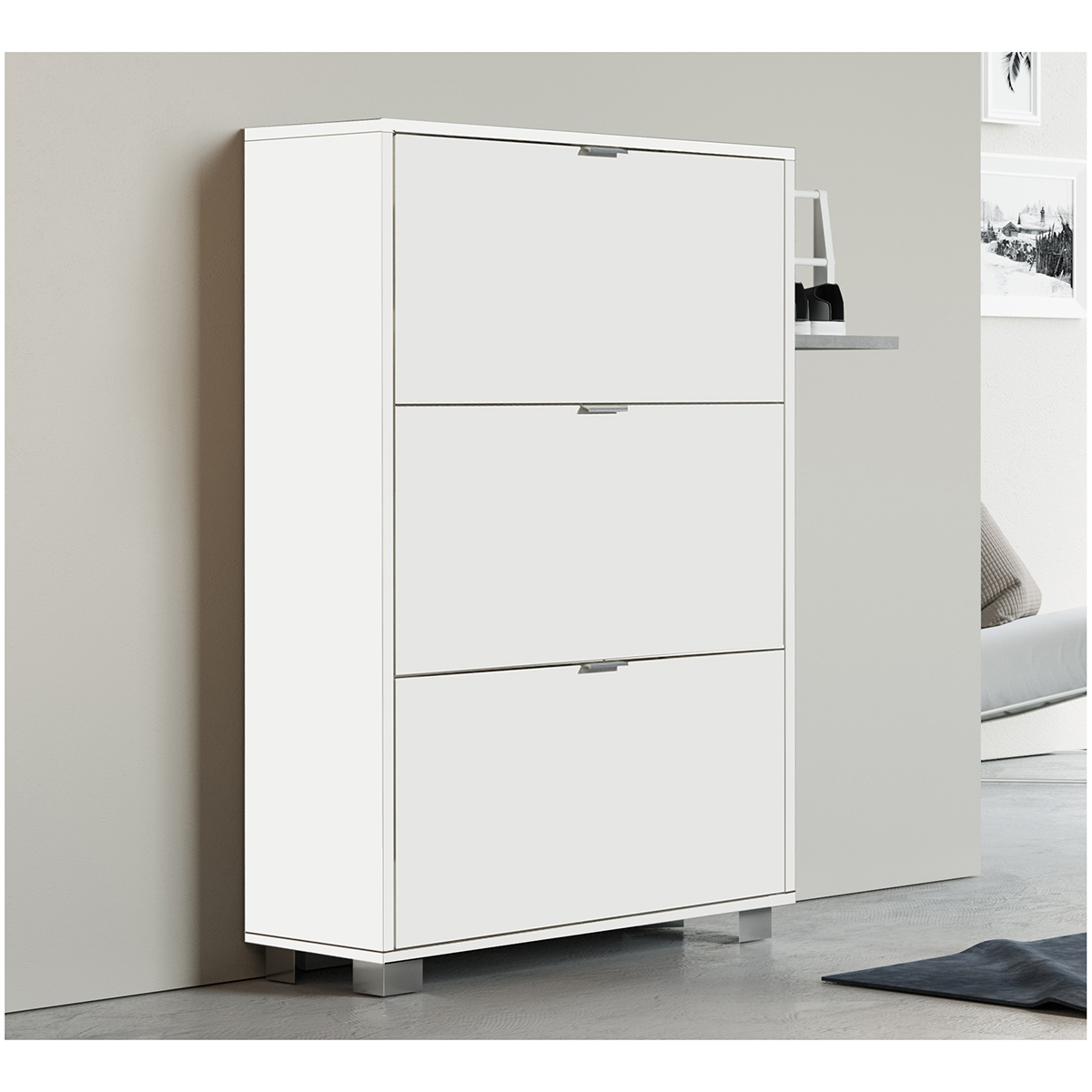 Scarpiera Con 3 Ribalte In Nobilitato Cm L76xh118xp30 Bianco Lucido