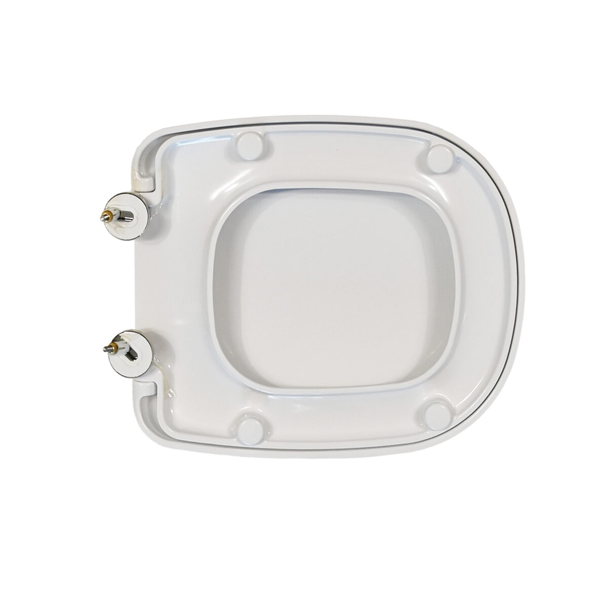 Sedile in termoindurente ( forma tipo 6 ) dedicato a casa ceramica Ideal Standard serie Tesi. Dimensioni: Larghezza cm 35,3. Lunghezza cm 37-42. Interasse cerniere cm 9-20. Cerniere in acciaio inox di tipo A e C. Cerniere regolabili.