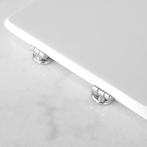 Sedile (Forma tipo 7 – cerniere tipo A) dedicato a casa ceramica Astra serie Hi-fi. Dimensioni: Lunghezza cm 43,5-49. Larghezza cm 36. Interasse cerniere cm 8,5-19,2. Cerniere regolabili. Sedile in legno stabilizzato, colato in poliestere. Cerniere in ottone cromato e viti di fissaggio in acciaio inox.