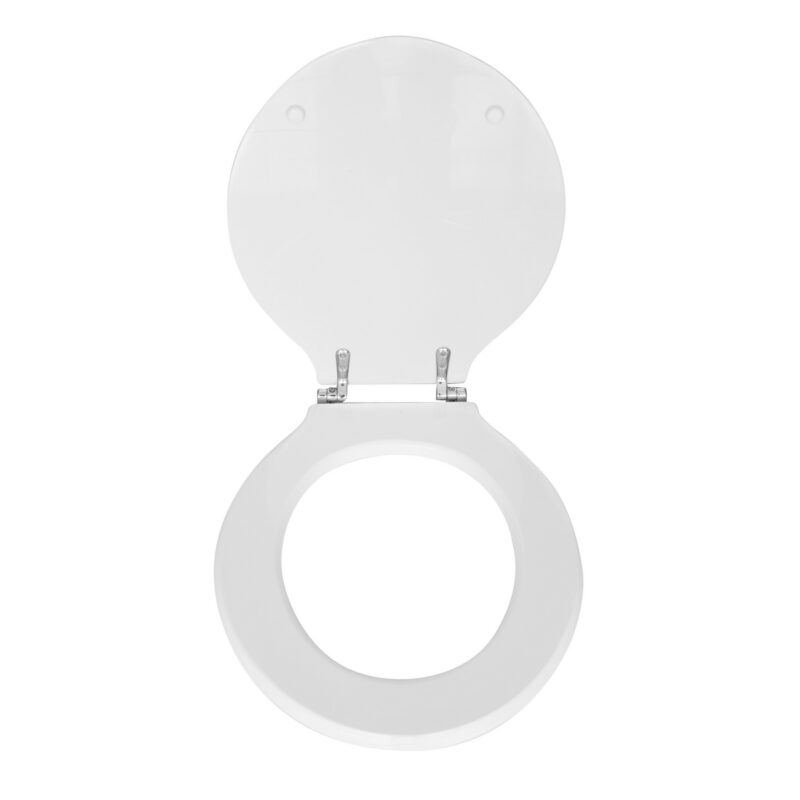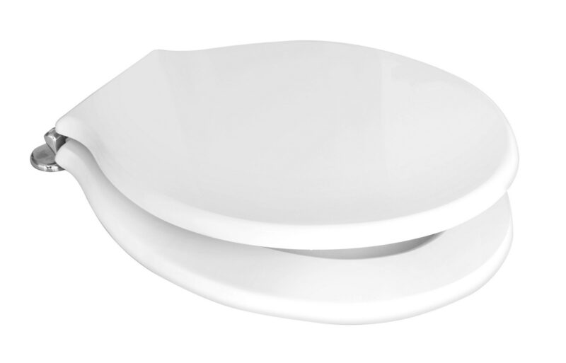 Sedile (Forma tipo 2) dedicato a casa ceramica Pozzi Ginori serie Monte Bianco. Dimensioni: Lunghezza cm 41-46. Larghezza cm 37.7. Interasse cerniere cm 9-19 . Cerniere regolabili. Sedile in legno stabilizzato, colato in poliestere. Cerniere in ottone cromato e viti di fissaggio in acciaio inox.