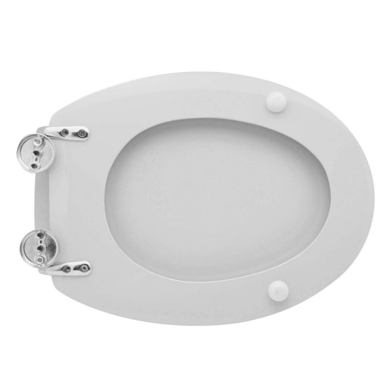 In legno. Versione scarico a muro: Lunghezza: cm 33,5-39. Larghezza: 27,3. interasse cerniere cm 7-17.5 mod. con cerniere regolabili. Versione scarico a pavimento: Lunghezza: cm 33-38. Larghezza: 29. interasse cerniere cm 7-17.5 mod. con cerniere regolabili. Sedile in legno stabilizzato, colato in poliestere. Cerniere in ottone cromato e viti di fissaggio in acciaio inox.