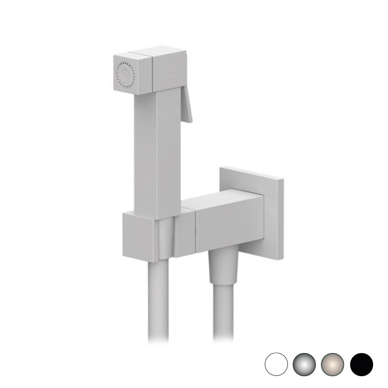 Miscelatore shut-off quadrato con cartuccia progressiva: Apertura su acqua fredda e passaggio ad acqua progressivamente calda tramite rotazione di un unica maniglia. Comprensivo di doccetta shut-off e flessibile cm 120.