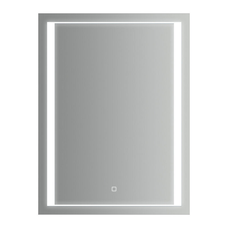 Specchio rettangolare, cm. 60×80 spessore mm. 5, 6500K Strip Led con accensione touch screen, 220-240V, 50/60 hz, protezione IP44, CE , senza rame. Installazione verticale.