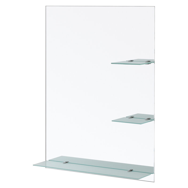 Linea Shelf: Specchio rettangolare con mensole in vetro satinato. Misure: 60x80cm.