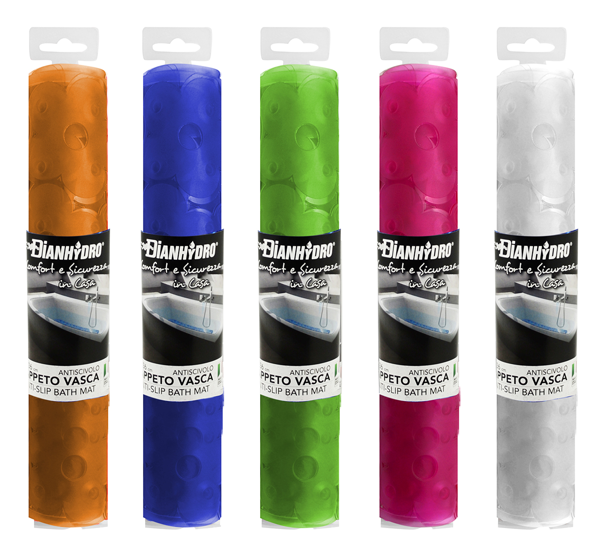 Tappeto antiscivolo per vasca. In PVC. Dimensioni: 72 x 36 cm. Con ventose di sicurezza.