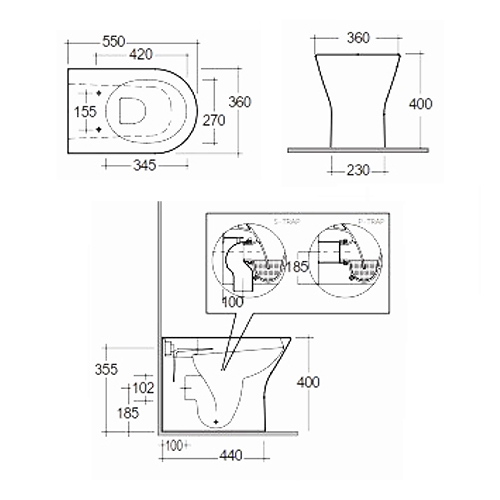 In porcellana. Compreso di curva tecnica. Fissaggi inclusi. Vaso fornito senza copriwater. Confezione scatolata.